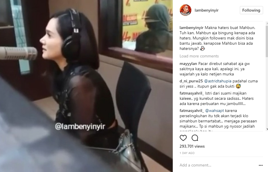 Melalui postingan yang diunggah ulang oleh akun gosip @lambenyinyir, Mulan yang dibalut pakaian hitam pun menjelaskan soal haters dalam sebuah siaran radio. "Makna haters buat Mahbun. Tuh kan, Mahbun aja bingung kenapa ada haters. Mungkin followers mak disini bisa bantu jawab, kenapose Mahbun bisa ada hatersnya?" tulis akun gosip tersebut.