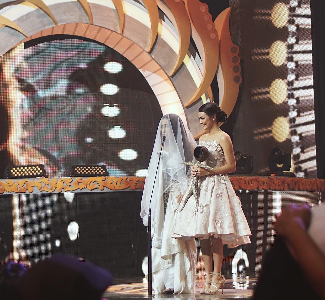 Nampak hadir Verrell Bramasta & Natasha Wilona kompak dengan setelan berwarna merah. Natasha sendiri masuk dalam nominasi Pemeran Wanita Terpuji.