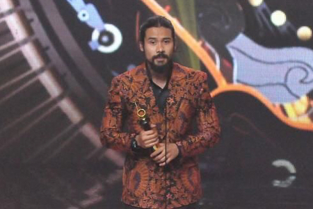Mengenakan batik, Chicco Jericho dengan gagah menyambt piala dalam nominasi Pemeran Utama Pria Terpuji.