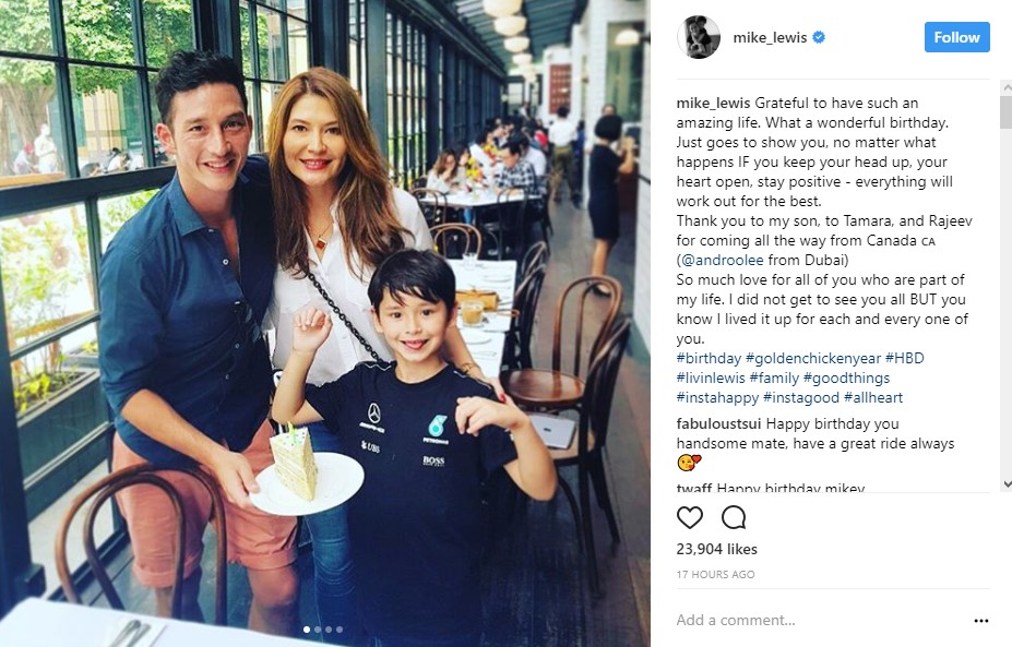 Melalui postingannya di Istagram, Mike membagikan foto romansa ulang tahunnya, baik bersama sang putra buah cintanya bersama Tamara, Kenzou Leon Blezynski Lewis, maupun para sahabat. Mike pun mengungkapkan rasa syukurnya itu. "Grateful to have such an amazing life. What a wonderful birthday. Just goes to show you, no matter what happens IF you keep your head up, your heart open, stay positive - everything will work out for the best (Bersyukur telah memiliki kehidupan yang menakjubkan. Ulang tahun yang menakjubkan. Hanya ingin menunjukkan padamu, apapun yang terjadi jika kamu tetap mengangkat kepalamu, membuka hati serta tetap positif- semuanya akan berjalan dengan baik)," tulis Mike, Selasa, 24 oktober.