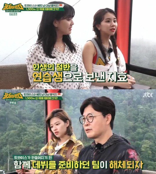 Jihyo yang telah menjadi trainee selama 10 tahun mengungkapkan, "Karena aku sudah menjadi trainee cukup lama, aku sampai tidak memiliki waktu untuk bepergian bersama keluargaku." Mendengar hal itu, Chaeyoung pun menimpali, "Aku juga tidak bisa ikutan darmawisata sekolah."