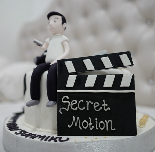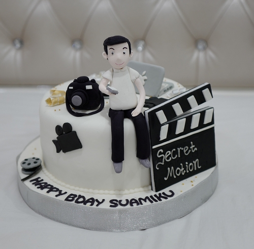 Rasa lelah yang melanda pun tak menyurutkan niat Puadin untuk berfoto bersama kue ulang tahunnya yang lucu.
