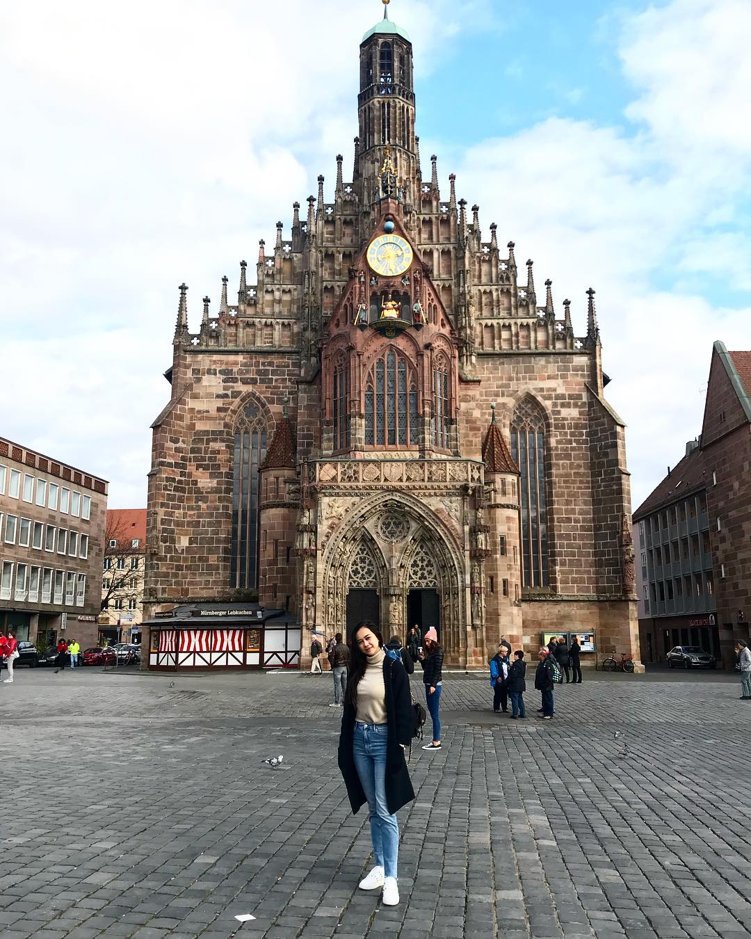 Di sela-sela waktu syutingnya, Aura menyempatkan diri untuk jalan-jalan dan berpose di bangunan terkenal di sana.