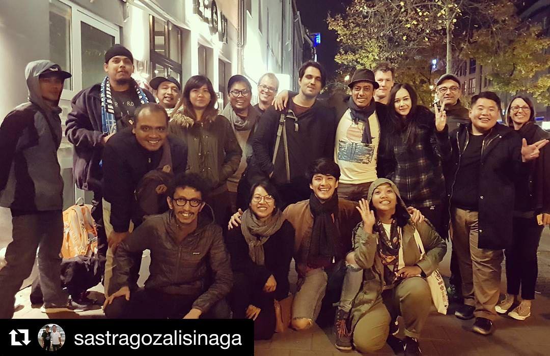 Aura Kasih pergi bersama segenap kru yang terlibat dalam proyek tersebut, ada Morgan Oey juga nampaknya.