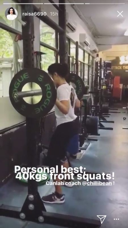 Tidak cukup sampai disitu, Raisa juga memamerkan kekuatannya yang lain. Ia mengangkat beban dengan berat 40 kilogram hingga membuat pelatihnya sendiri tercengang. "Personal best; 40kgs front squats! Canlah coach @chillibean!," bunyi keterangan dalam postingan itu.