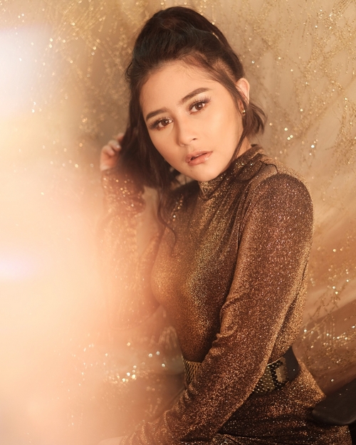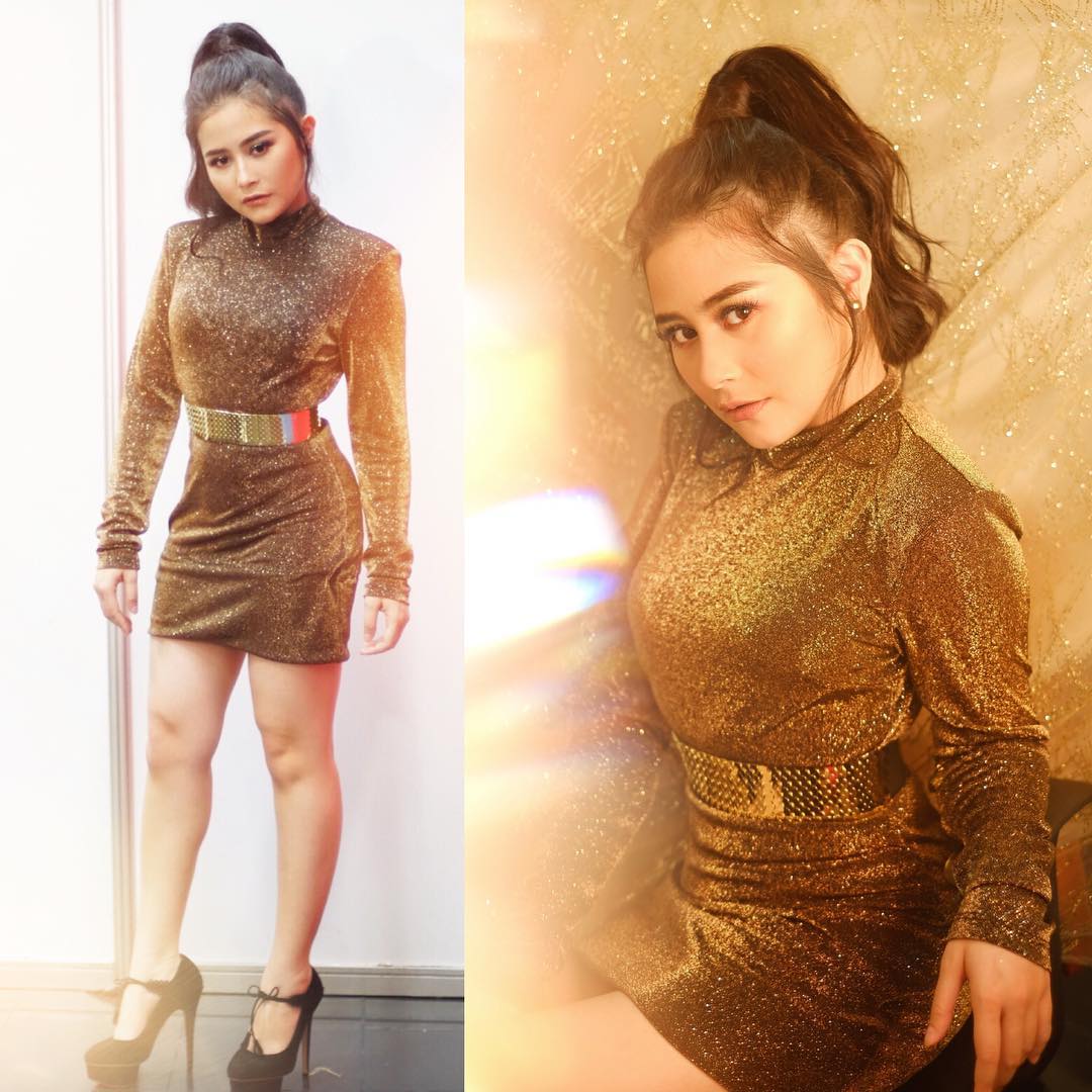 Mengenakan gaun blink-blink keluaran rumah mode H&M, Prilly begitu cantik dan mempesona.