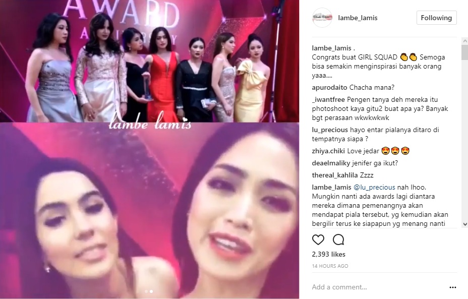 "Gk berbobott gk penting juga wkwkwkwkw gk berfaedah jugaa wkakaka," sindir @musclemus********h6969. "Perkumpulan para wanita aja dpt penghargaan, apa karna mereka ini artis dn orang kaya ya?" ujar @ju******miy. "penghargaan jaman sekarang gk patut di contoh..mangkan a jaman dl banyak orang jadi lonte karna kurang Makan ..klo jaman sekarang jadi lonte Untum gaya hidup ...Miris," imbuh @*****a_upruzz.