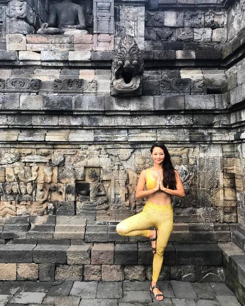 Bahkan, ibu tiga anak itu melakukan gerakan yoga di kawasan Candi Borobudur seperti ini.