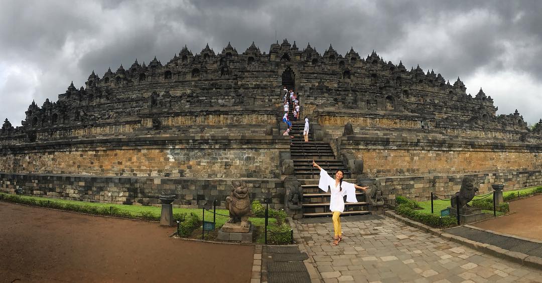 FOTO: Liburan ke Candi Borobudur, Indah Kalalo Pamer Pose Seksi Saat Yoga