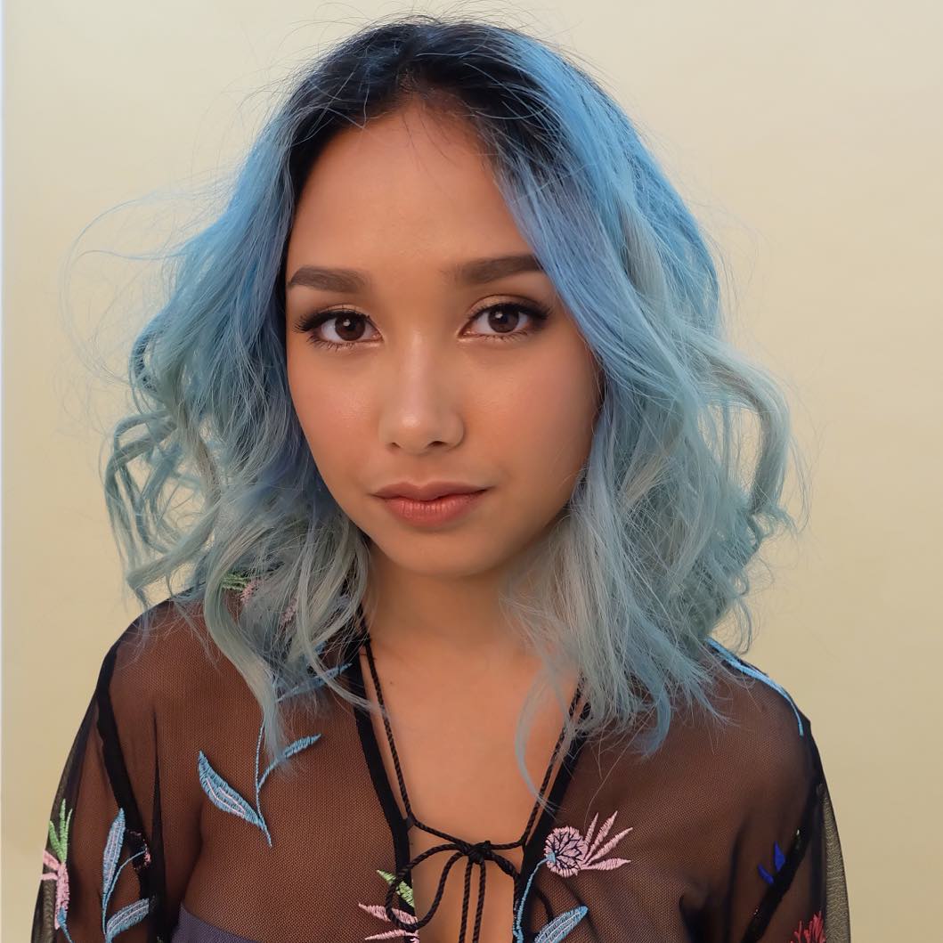 Nampak berbeda, Salwa Muchtar tampil beda dengan rambut tosca yang lucu abis.