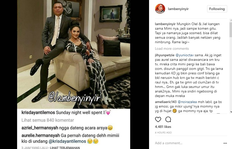 Sontak, postingan yang diunggah ulang oleh akun gosip @lambenyinyir itu pun menuai berbagai komentar. Bukan hanya melayangkan cibiran pada Krisdayanti, sejumlah netizen juga menyindir Aurel dan Ashanty.