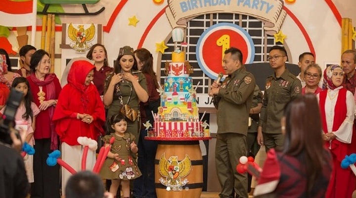 Kanal247.com - Ulang tahun anak kedua Ashanty dan Anang Hermansyah, Arsya digelar secara meriah tepat di hari Sumpah Pemuda, Sabtu, 28 Oktober lalu. Bertema nuansa tentara perjuangan, acara pesta ulang tahun Arsya yang pertama itu dihadiri oleh sederet artis papan atas tanah air.