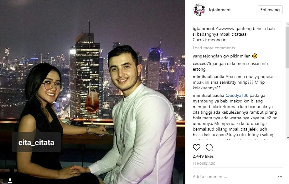 Sontak, tak sedikit netizen yang memuji ketampanan kekasih Cita Citata. "Terlalu cakeeepppp !!!!" ujar @eli****ta. "Cita nya juga cantik,jd pas lah dpt abang ganteng. Tp ini gantengnya kebangetan sih," kata @lovei****h123. "Ganteeeng sih, tapi meragukan takut beloooook," timpal @g****ett dengan emoji tertawa.