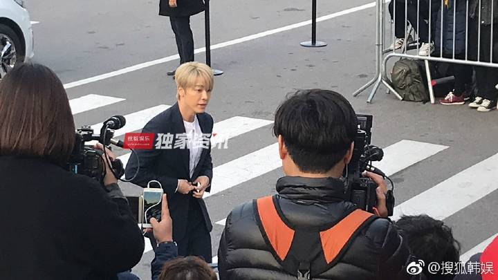 Rambut pirang Lee Donghae Super Junior membuat kedatangannya dengan mudah menarik perhatian awak media yang telah menanti di pelataran Hotel Shilla.
