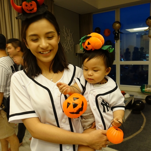 Di pesta pertamanya, Nastusha berdandan ala Jack O'Lantern, labu orange yang khas dengan perayaan Halloween. Mirip?