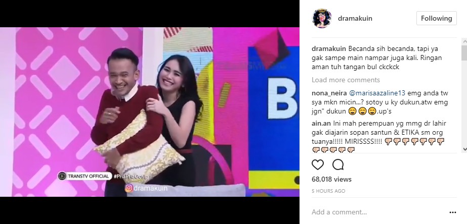 "@ayutingting92 tangan itu bisa gak biasa aja, gimana rasanya kalo adek loe becanda di gituin temennya," cibir @adede*****ti. "Klo bahasa jawanya itu nglamak ma yg lebih tua gak sopan @ayutingting92," sindir @lia_al_k****fi. "Ga punya attitude, ga suka banget liat ruben di gituin dia punya istri punya anak kog ga dihargain, becanda apaan kyk gitu.." imbuh @ve****_assa.