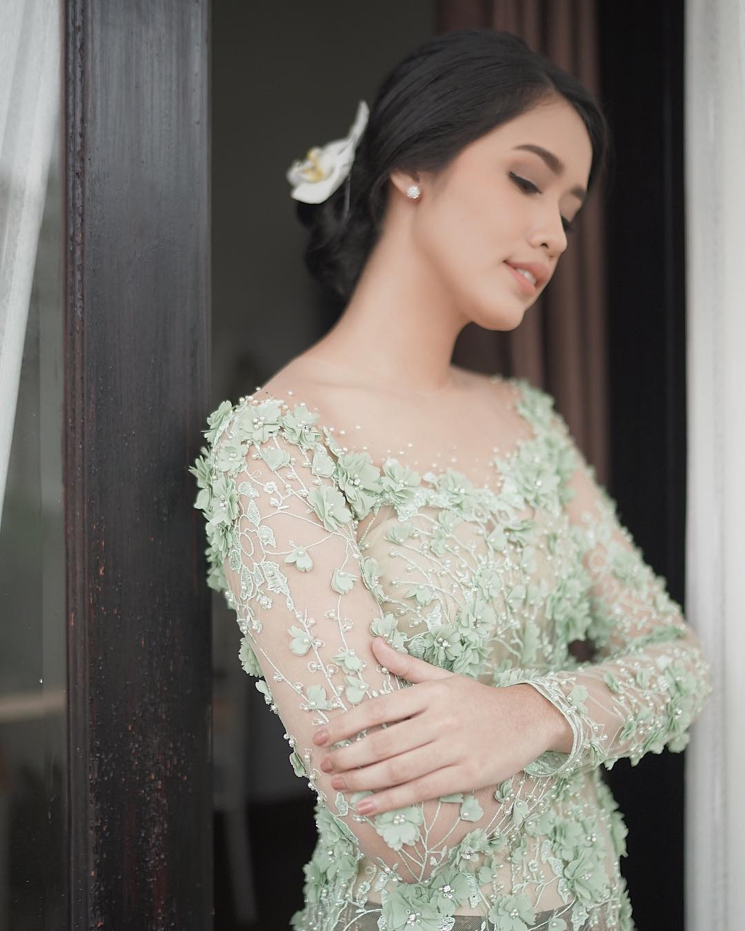 Ana sendiri begitu cantik dengan kebaya berwarna hijau yang didesign oleh Liane Puspita.