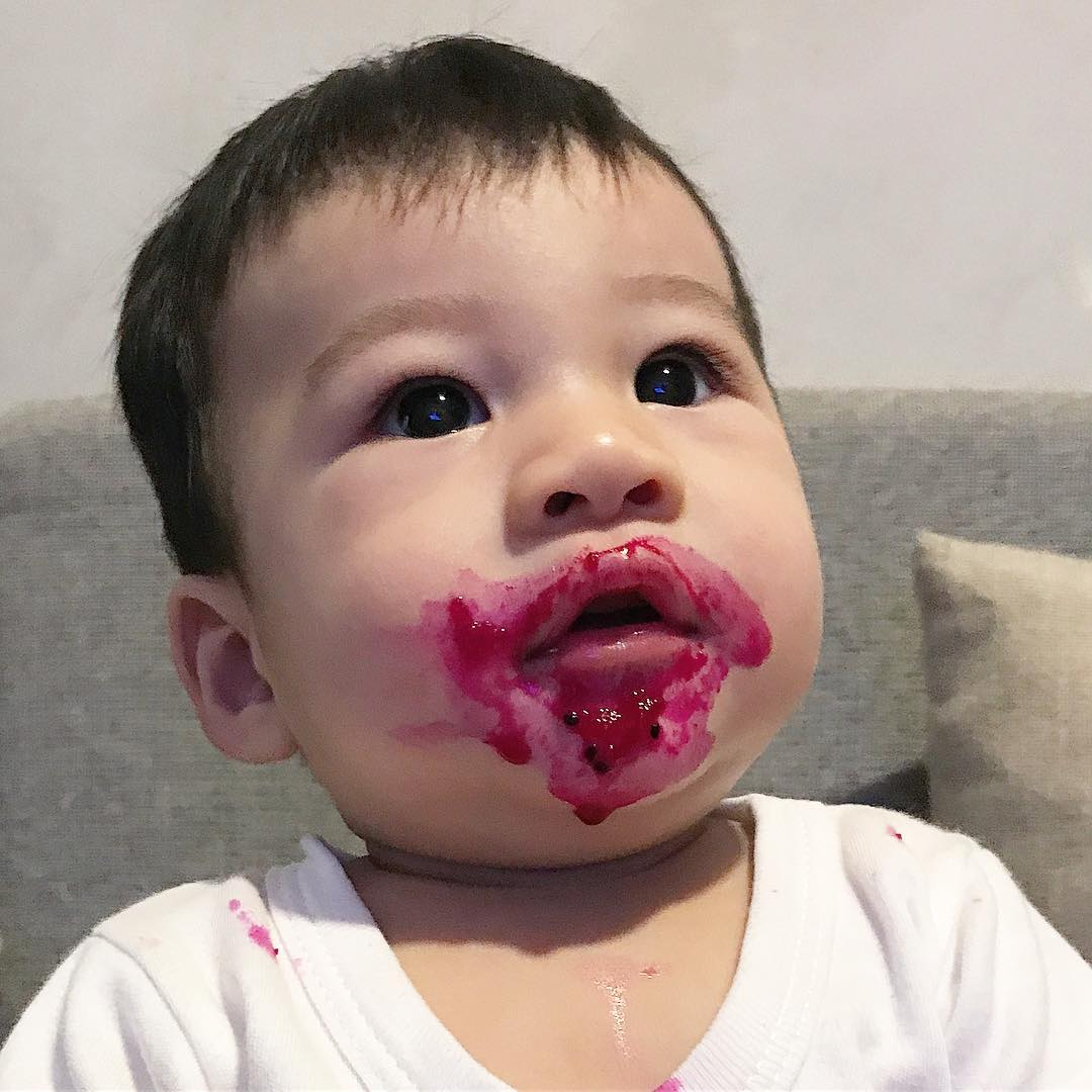 Siapa yang tidak gemas melihat potret lucu Iori ini? Mulut belepotan karena buah naga justru membuatnya makin unyu kan?