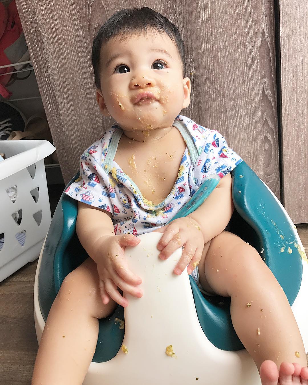 Wajah polosnya ketika makan dengan belepotan ini nggak akan membuatmu marah-marah bukan?