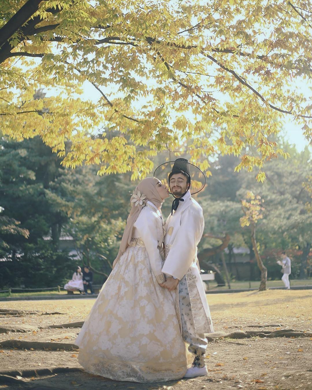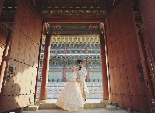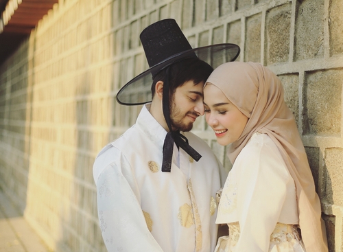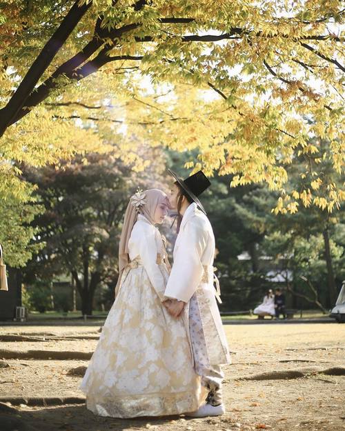 Pasangan yang menjadi idola baru di media sosial itu kompak mengenakan kostum hanbok, sebagai busana pemotretan.