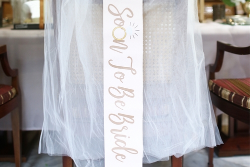 Layaknya bridal shower pada umumnya, Deasy juga mengenakan selempang bertuliskan 'Soon to be Bride' seperti ini.