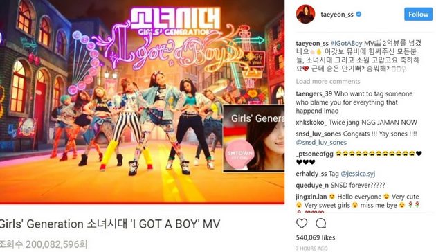 "'I Got A Boy' ditonton lebih dari 200 juta kali. Aku berterima kasih kepada semua orang yang menggunakan kekuatannya untuk mendukung MV ini, Girls' Generation dan SONE. Selamat. Apakah SM juga senang? Apa yang kamu lakukan?" tulis Tae Yeon gemas. Alhasil, dalam waktu singkat postingan Tae Yeon itu diikuti oleh netter dan fans lainnya yang ikut mengkritik SM Entertainment. Menurut mereka, SM terlalu cuek sehingga melupakan "jasa budi" grup dengan nama singkat SNSD yang pernah menjadi mesin uang pertama mereka.