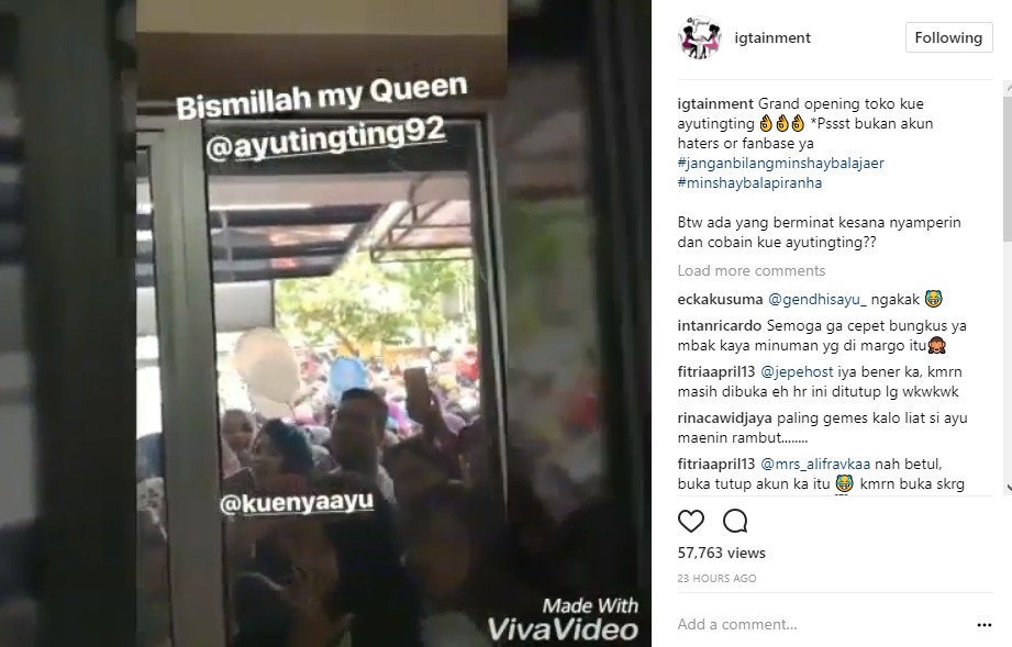 Mengetahui postingan tersebut, berbagai komentar pun dilayangkan pada Ayu Ting Ting. Bukan hanya berkomentar soal pengunjung toko, sejumlah netizen justru fokus dengan penampilan Ayu Ting Ting.