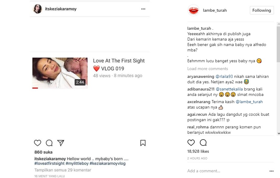Sontak, kabar Kezia melahirkan itu pun cukup menuai sorotan publik, terlebih setelah akun gosip @lambe_turah. mengunggah ulang postingan tersebut. Alih-alih mengucapkan selamat, tak sedikit netizen justru curiga Kezia hamil di luar nikah. Seperti diketahui, wanita 24 tahun itu menikah pada 29 Maret 2017 lalu dan mengumumkan kehamilannya pada bulan Mei (sumber: tribunnews.com). Namun, belum genap 8 bulan menikah, Kezia justru telah melahirkan.