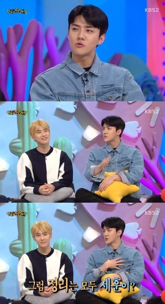 Setelah mendengarkan permasalahan pelik yang dialami oleh Sehun tersebut, para MC pun bertanya apakah akhirnya Sehun yang harus membersihkan kamar karena teman sekamarnya itu tidak melakukannya. "Aku juga tidak bersih-bersih sih," jawab Sehun yang sukses membuat para hadirin terbahak-bahak.