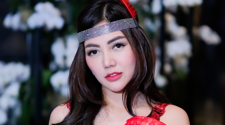 Jika sebelumnya ia memilih tema putih untuk arisan perdananya, kali ini merah menyala ia pilih untuk menunjukan kesan berbeda.