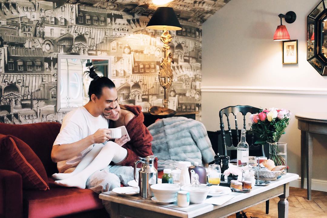 Pagi hari, mereka sudah disambut dengan menu sarapan dan dekorasi menarik yang memberikan kesan romantis dalam hari pertama mereka di Paris.