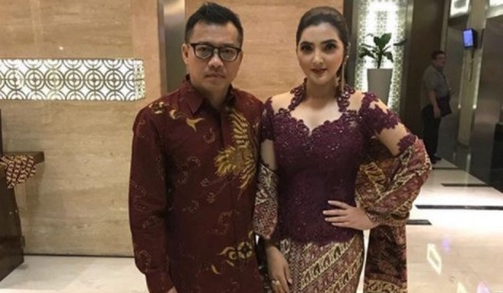 Hadir bersama Anang Hermansyah, Ashanty tampil anggun dengan balutan kebaya bernuansa merah marun.