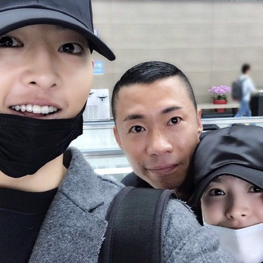 Joo Hyung Sun tak sengaja bertemu dengan Song Joong Ki dan Song Hye Kyo di bandara, kemudian mengabadikan momen itu lewat foto ini.