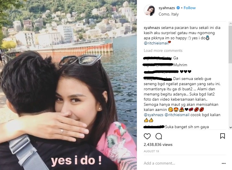 Bahkan, siapa sangka jika Jeje telah memberikan kejutan tak terduga pada Syahnaz di pertengahan Agustus lalu. Di Italia, ternyata Jeje melamar Syahnaz secara tak resmi. Saat itu, Syahnaz dengan cincin di jari manisnya tampak bahagia hingga dirinya membagikan postingan di akun Instagram.