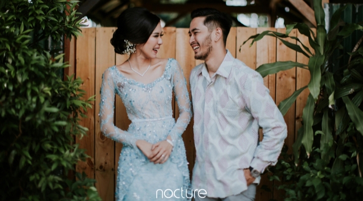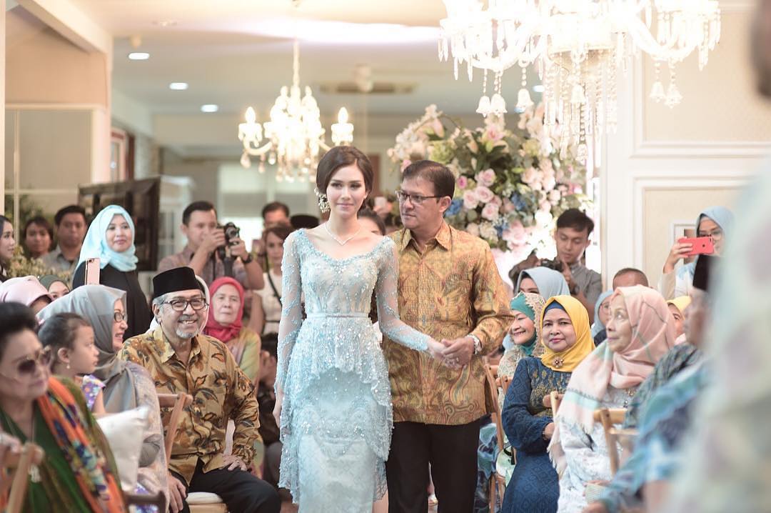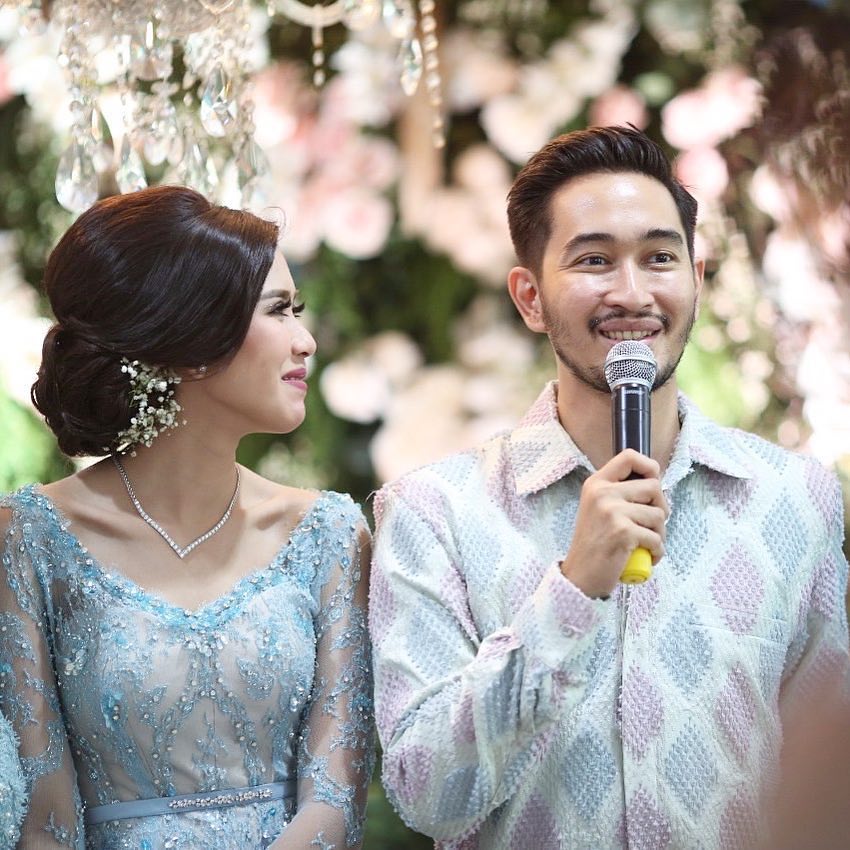 Keduanya menggelar prosesi bernuansa warna biru muda dengan dekorasi penuh bunga yang simpel dan juga elegan.