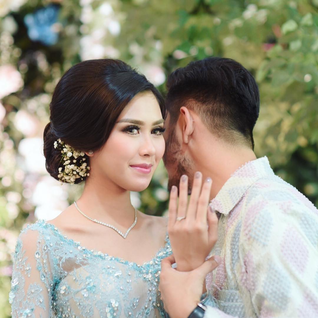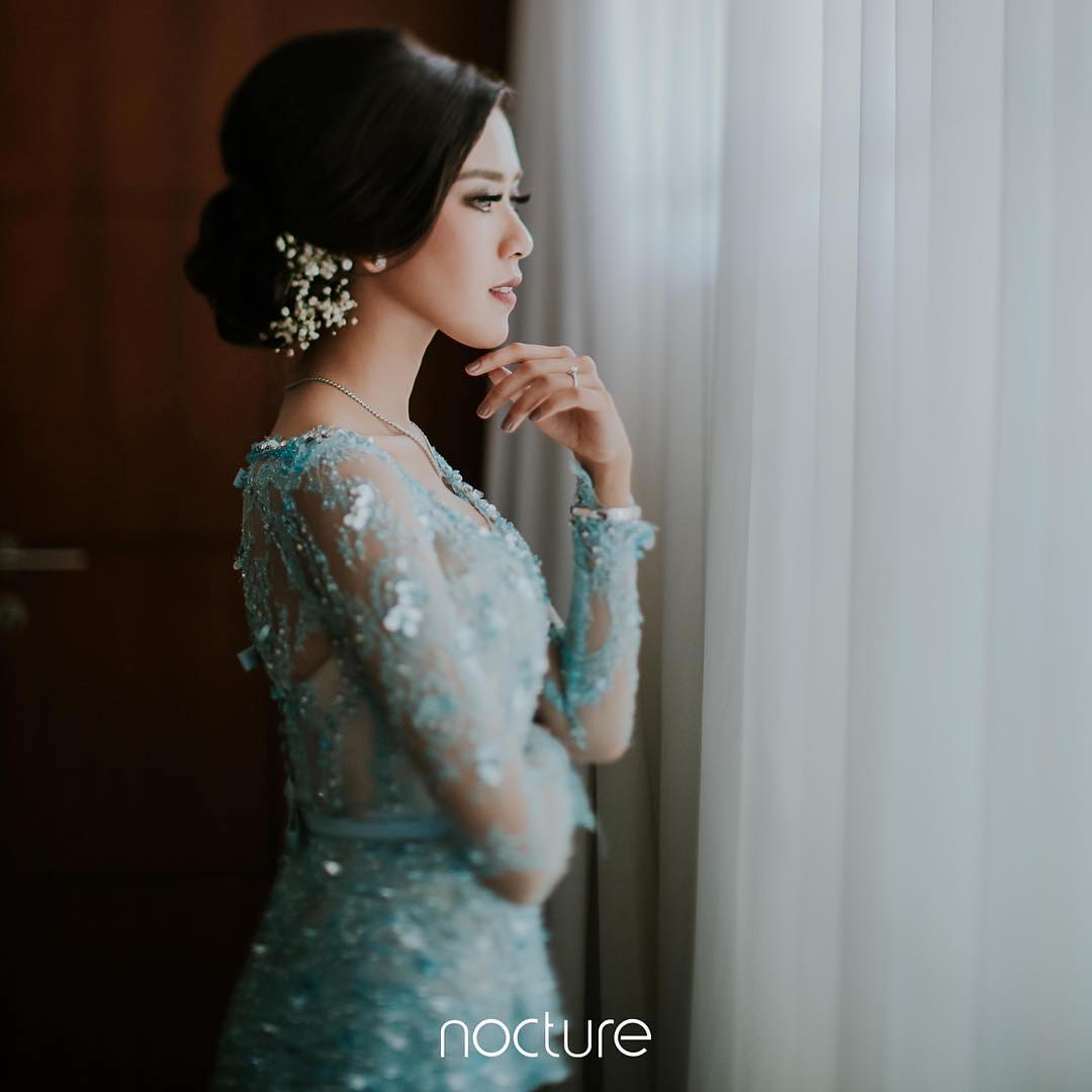 Intip sederet foto kebaya biru yang dikenakan Syahnaz Sadiqah dalam prosesi lamarannya bersama Jeje Govinda.