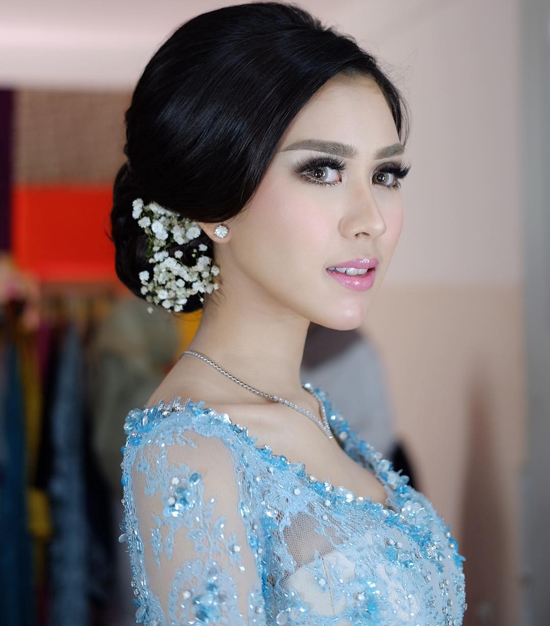 Sanggul di rambut Syahnaz juga tak kalah cantik berkat kreasi tangan seorang hair stylist Anda Arrusa.