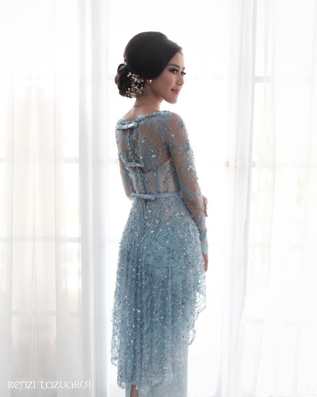 Kebaya berwarna biru itu disebut Renzi menyimbolkan kepercayaan, kesetiaan dan juga rasa percaya diri bagi pemakainya.