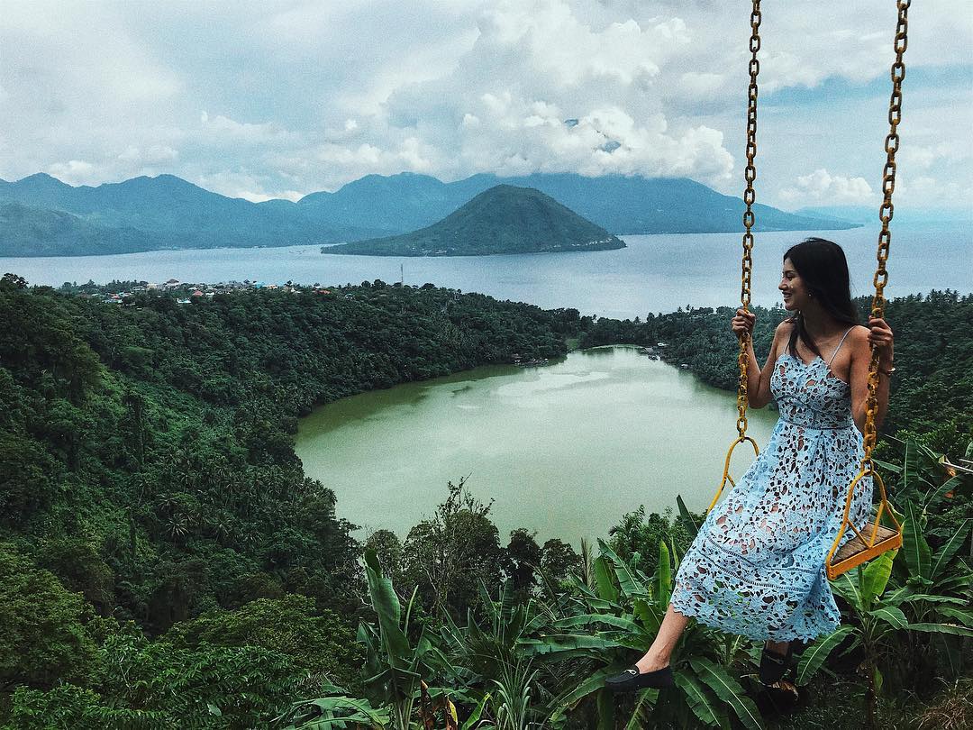 Usai selesai menjelajahi pantai, Atries pun kemudian berkunjung ke Danau Laguna. Sebuah danau cantik yang ada di kawasan Ternate, Maluku.