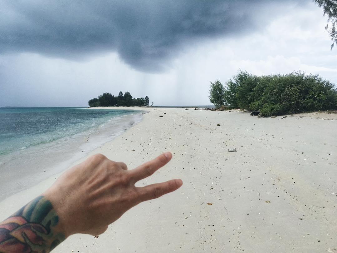 Tak seperti Atries yang suka mengunggah gayanya saat liburan, Chef Juna justru hanya mengunggah pose 'peace' dari tangannya ketika di Morotai.