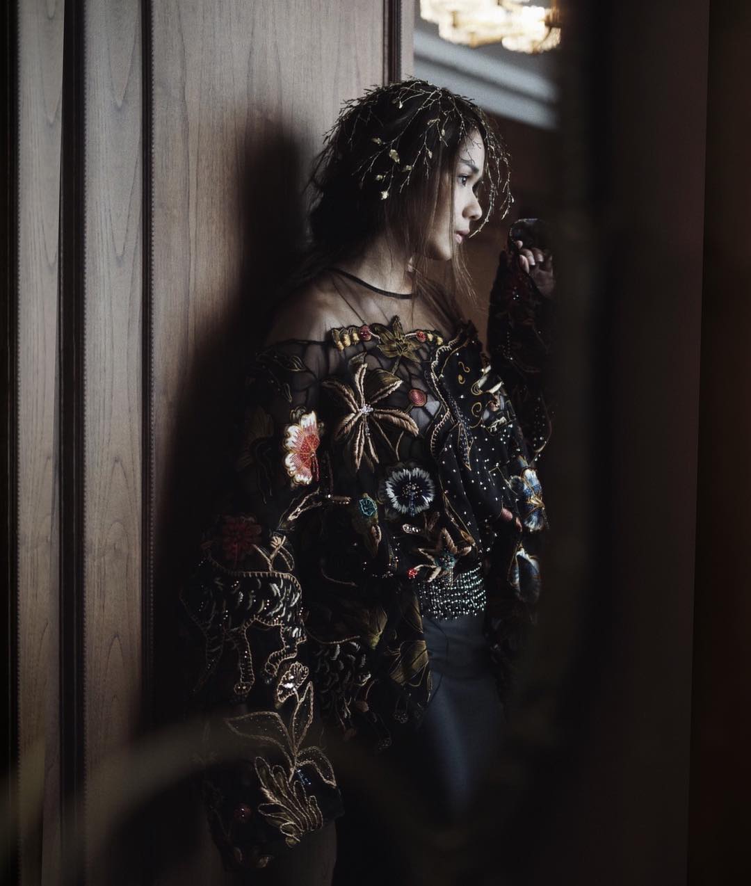 Dalam jepretan Shadtoto Prasetio, Adinia Wirasti juga begitu cantik dengan busana batik rancangan Iwan Tirta ini bukan?