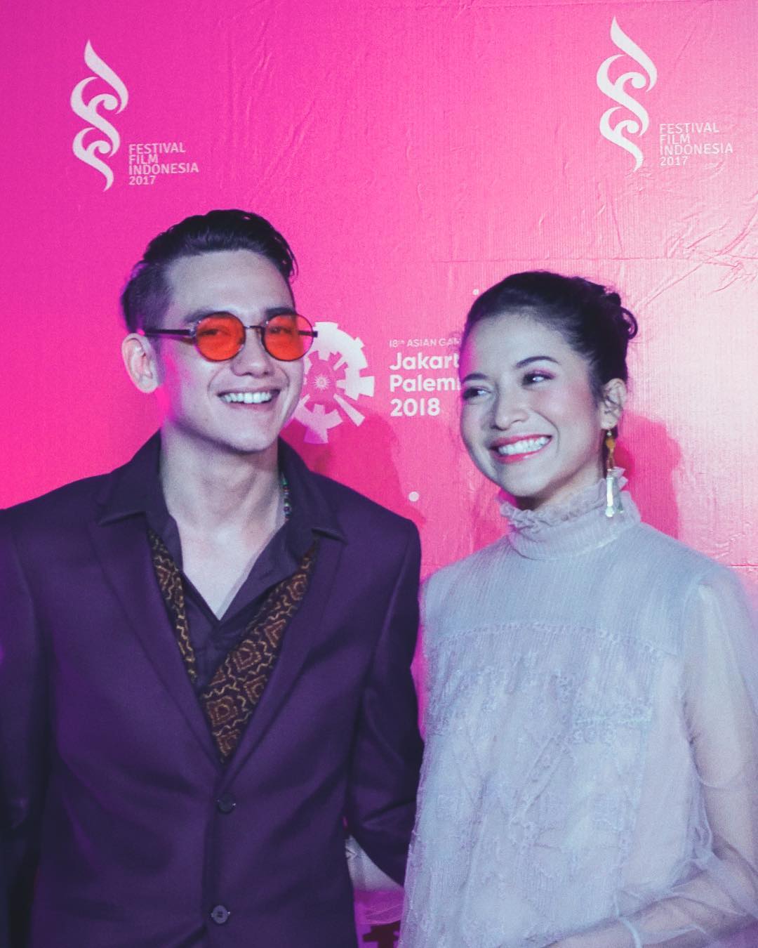 Ia hadir ditemani oleh lawan mainnya, Adipati Dolken yang nyentrik dengan kacamatanya.