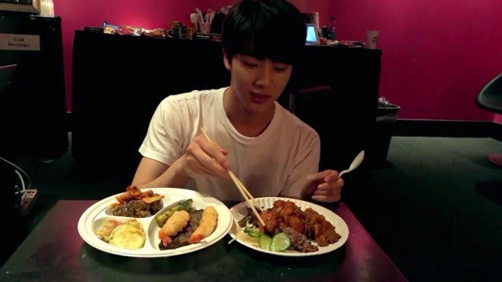 Kecintaannya pada makanan itu pun disalurkannya dalam acara mukbang yang ia beri nama "Eat Jin". Dalam acara mukbang yang ditayangkan via V Live tersebut, fans bisa melihat aksi Jin saat menikmati berbagai makanan lezat dengan sangat lahap. Wajah pelantun "Blood, Sweat & Tears" ini pun selalu tampak bahagia saat makan. Namun, bagi para fans yang menonton acara "Eat Jin" itu harus siap-siap menahan air liur karena cara makan Jin bakal membuatmu lapar dan pengen ikutan makan.