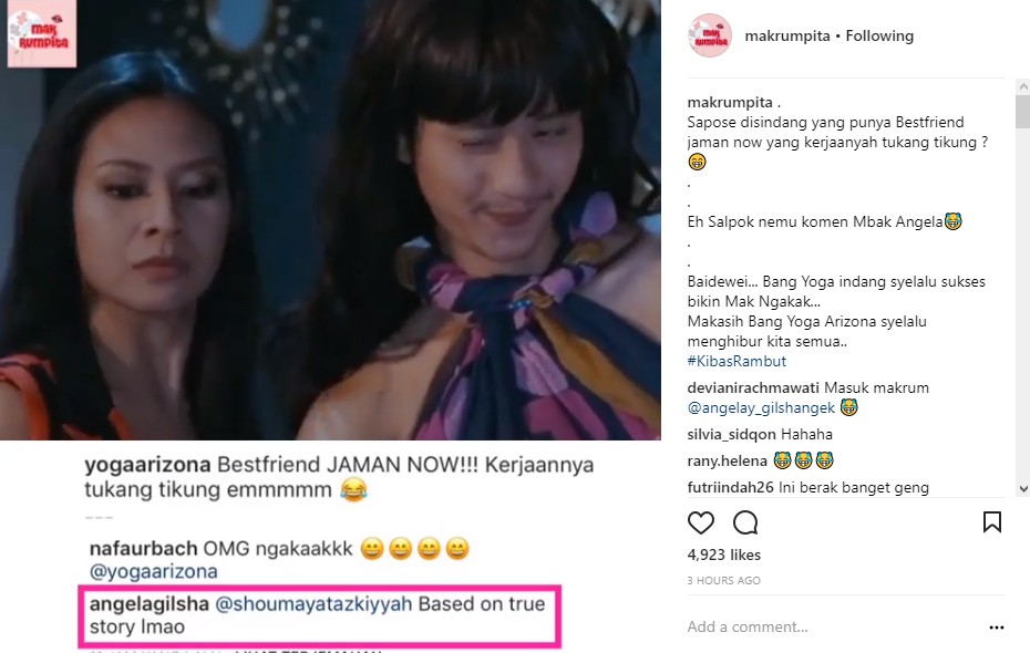 Postingan Yoga itu menceritakan soal wanita yang merebut kekasih sahabatnya. Selalu menghadirkan adegan konyol, Yoga pun sukses menarik perhatian netizen, termasuk Nafa Urbach dan Angela Gilsha. Kedua selebritis cantik itu pun melayangkan komentar pada postingan tersebut.
