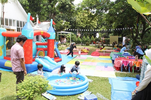 Berhubung tamu undangannya adalah anak-anak kecil, maka ia pun menyiapkan taman bermain buatan agar tamunya bisa seru-seruan selama acara.