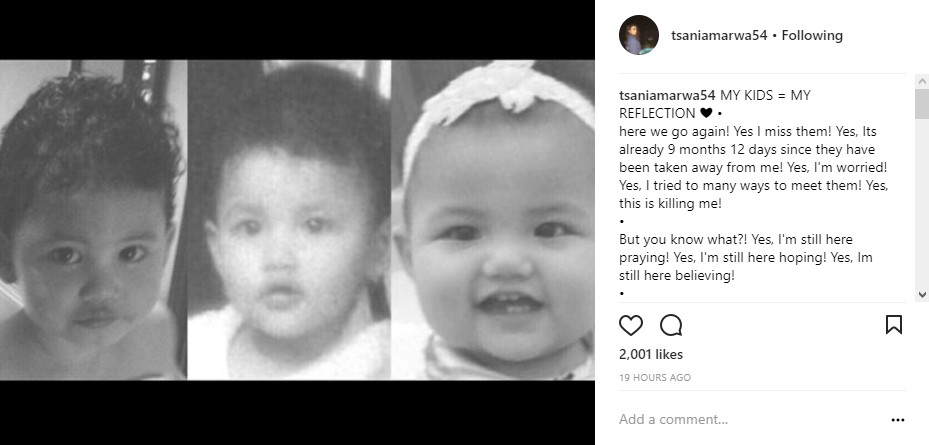 Tiga bulan setelah resmi bercerai, Marwa kembali menjadi sorotan. Pasalnya, bintang sinetron "Putri yang Ditukar" itu kembali menuangkan curahan hatinya terkait kedua anaknya. Melalui postingan di Instagram, Tsania pun mengungkapkan kedundahan saat dirinya tak bertemu dengan kedua anaknya selama 9 bulan 12 hari. "here we go again! Yes I miss them! Yes, Its already 9 months 12 days since they have been taken away from me! Yes, I'm worried! Yes, I tried to many ways to meet them! Yes, this is killing me!" tulis Marwa, Selasa, 14 November.