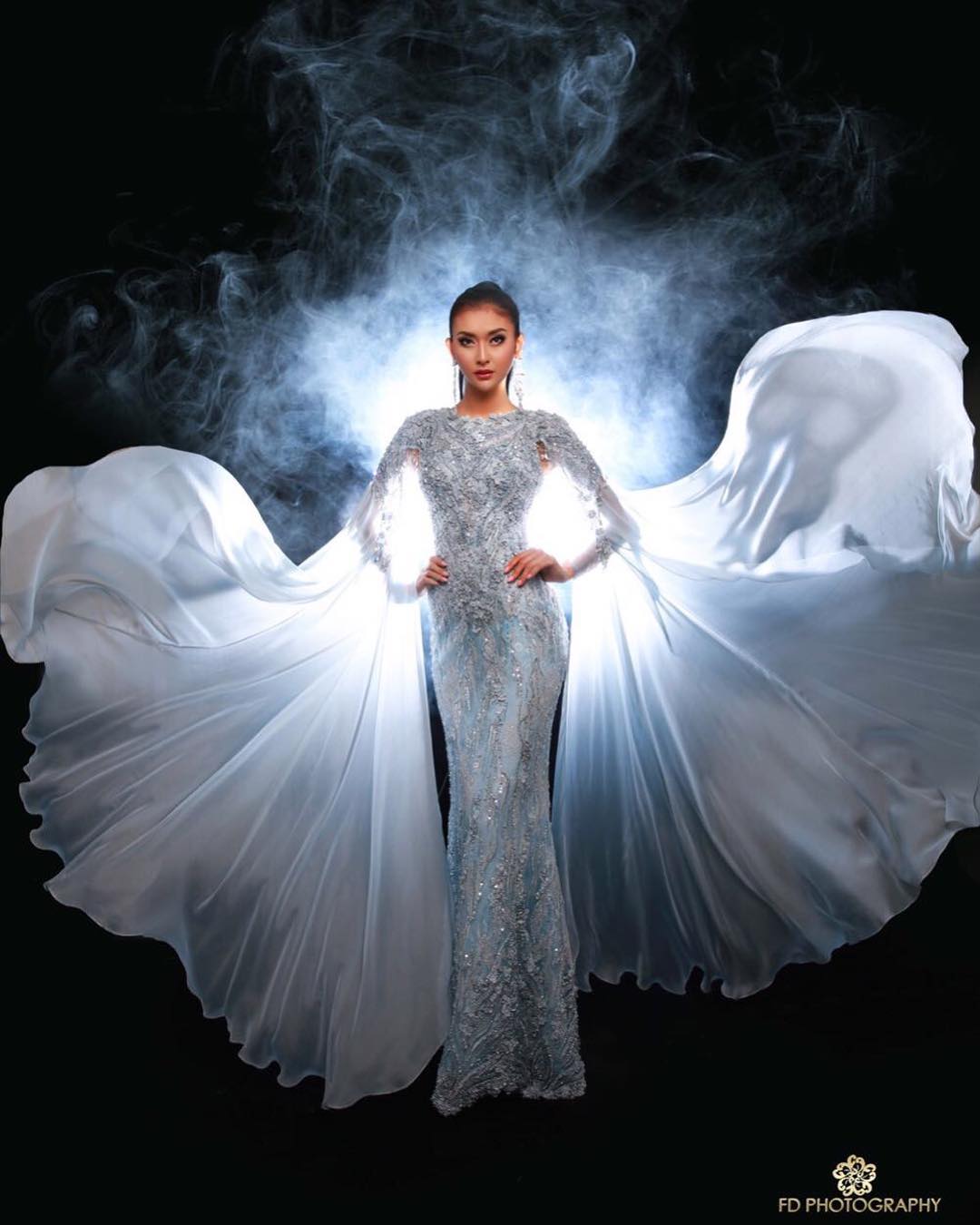 Ia datang dengan membawa gaun-gaun rancangan designer Indonesia, salah satunya adalah Ivan Gunawan.