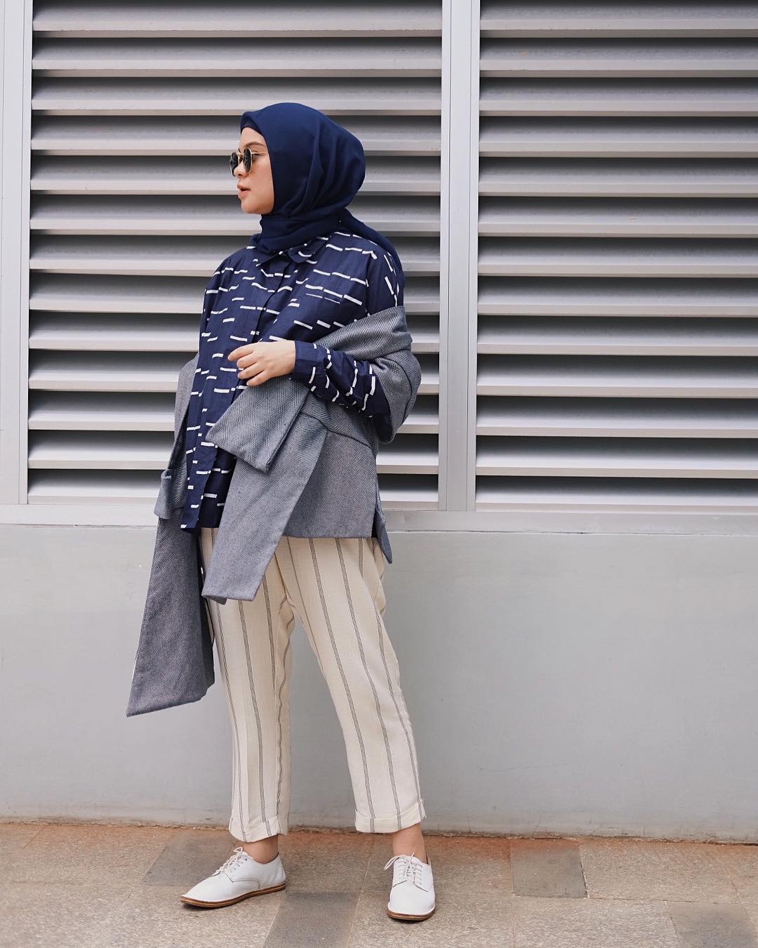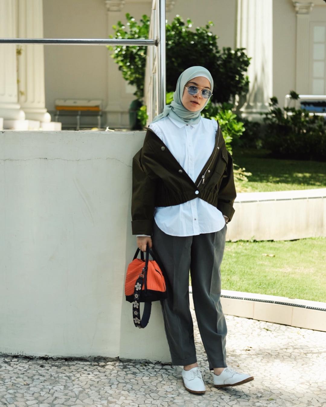 Padu padan celana, blouse dan gaya hijab sederhana ini bisa banget ditiru lho!