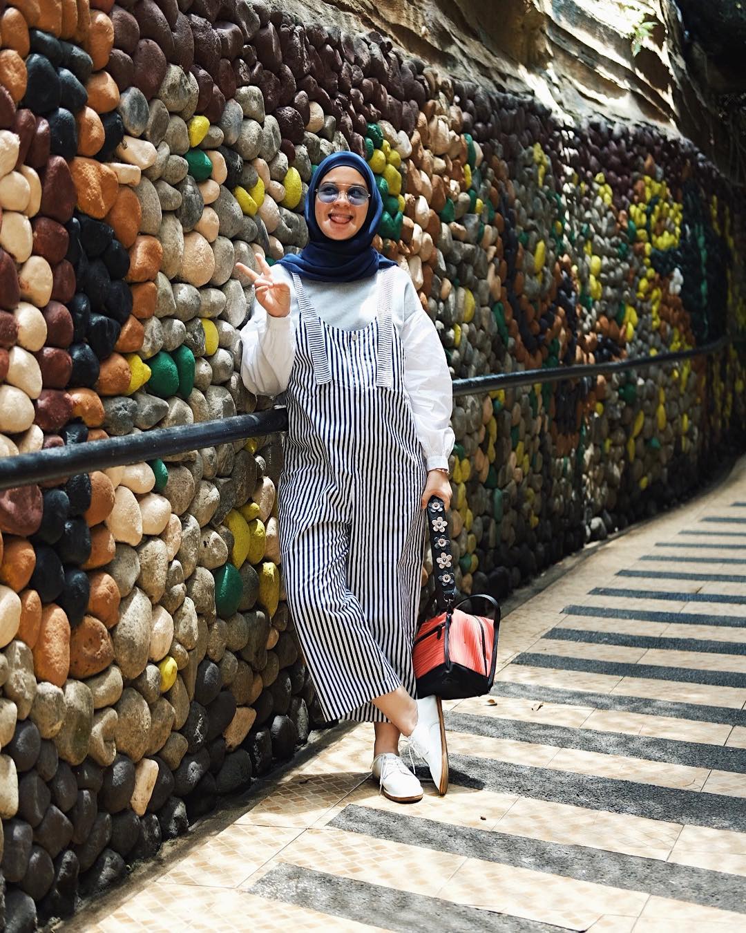 Melihat dari gayanya, nampaknya istri Haykal Kamil ini memang condong mengedepankan gaya fashion kasual ya?