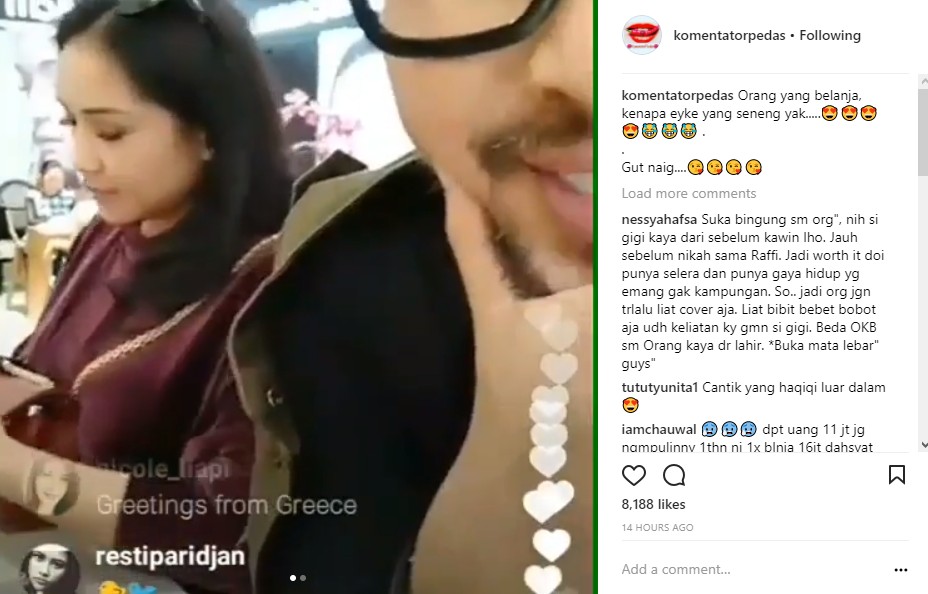Saat itu, Gigi tampak tak begitu peduli dengan aksi yang dilakukan oleh temannya. Tanpa melihat ke arah kamera, Gigi justru fokus dengan total pembayaran barang yang telah dibelinya. "Orang yang belanja, kenapa eyke yang seneng yak....." tulis akun @komentatorpedas dalam keterangan postingannya.